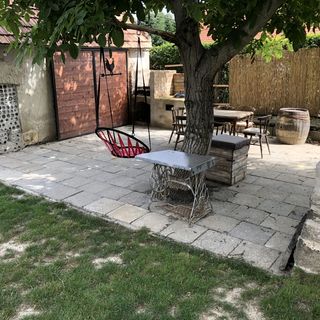 Jól megközelíthető autóval és kényelmesen lehet parkolni a ház udvarán. Sajnos a mindennapos használat nem volt zökkenő mentes. A víz nem folyt le a kétmedencés mosogatóban és kb. 2-3 liter után a szomszéd medencében is vissza jött és állt a koszos víz. Így nem volt hol lecsepegtetni az elmosott edényeket. Miután kellően megtelt lassan a szekrény belsejébe kezdett el csurogni. Maga a használati eszközök sem voltak megfelelőek, rozsdás wok, félig működő mikró, pókhálós kancsó....Alapvetően nagyon szegényes volt a felszereltség ezért az összegért amit kértek. Remélem kívánják fejleszteni, mert a maga a hely jó adottságokkal bír.