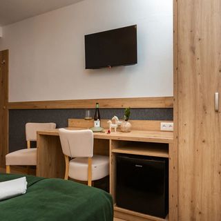 Bardzo małe pokoje, ledwo trzymający się kran, zardzewiały uchwyt na mydło. Po przejechaniu 500 km dowiedzieliśmy się, ze nie dostaniemy obiadu, chociaż byliśmy koło godz. 15 tej. Nie zwrócono nam za te wyżywienie. Rezerwując pokój 4 os., chciano nam przydzielić pokój mniejszy. Oczywiście nie zgodziliśmy się.