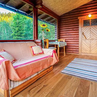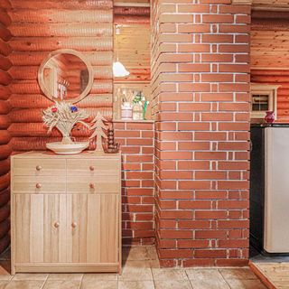 - Dom wykonany z drewna i cegły