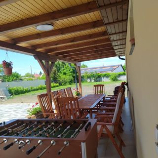 styczeń 2024Nagyon barátságos a tulajdonos, igényes, tiszta, jól felszerelt a ház, minden szobához van saját fürdőszoba, a kertben szauna és jacuzzi, szépen kialakított nyári konyha.