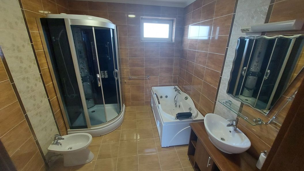sierpień 2025Mindent megtaláltunk egy helyen, amire vágytunk! Bár rossz időt fogtunk ki, mégsem unatkoztunk. Volt medence, jakuzzi, szauna, csocsó, biliárd, darts! Az egész ház makulátlan, tágas és modern. Külön örültünk, hogy minden szobához tartozott saját fürdőszoba. Nem utolsósorban a tulajdonos kedvességét is megemlíteném, lehet, másnak nem számít, de nekünk jól esett. Csak ajánlani tudom a helyet, mi biztos megyünk még!