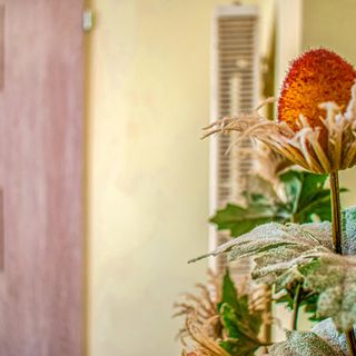 - Dom wykonany z drewna i cegły