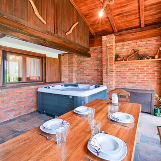 - Dom wykonany z drewna i cegły