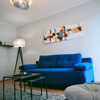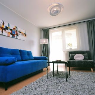 Sofa w salonie z funkcją spania (140x200) oraz łóżko pojedyncze 90x200. W sypialni łóżko 140x200 oraz pojemna szafa.