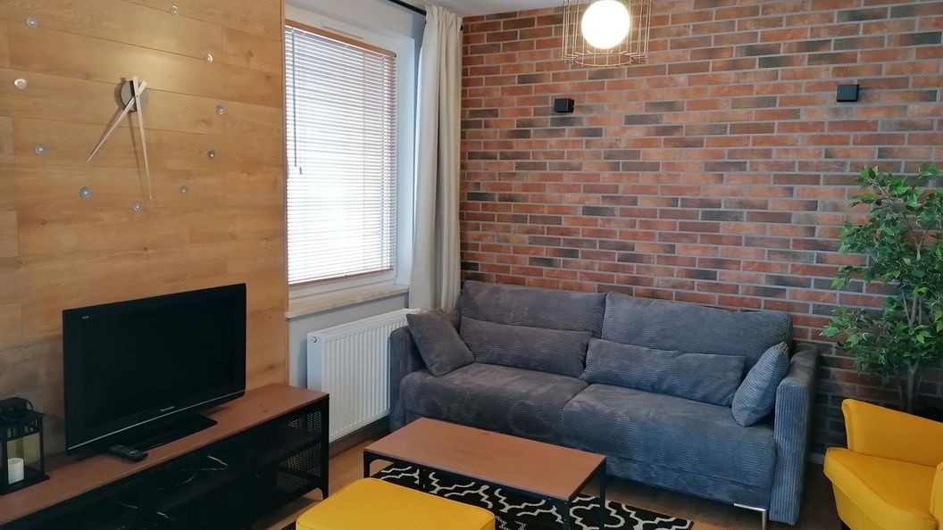 Apartament z 1 sypialnią przystosowany jest dla 4 osób. Składa się z dwóch pokoi, większego z balkonem, gdzie kuchnia połączona jest z jadalnią i częścią wypoczynkową (rozkładana kanapa), i mniejszego jako sypialnia (łóżko małżeńskie).