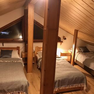 Oferujemy klimatyczne wnętrze, rodzinną, swobodną atmosferę i wygodne pokoje. Do dyspozycji gości wspólny salon z tarasem widokowym i aneksem kuchennym oraz jadalnia. Jest też nieduży taras w części frontowej budynku, z huśtawką ogrodową i stolikami, oraz ogródek z tyłu, otoczony lasem, z możliwością grillowania latem.