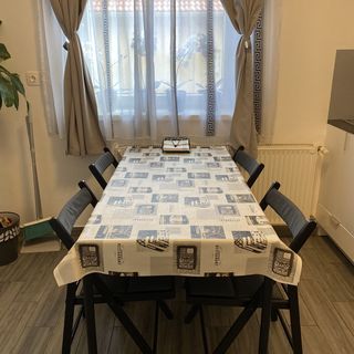 wrzesień 2022Tiszta és modern szobák, felszerelt konyha. Nagyon közel a pincesor, bolt, pékség.