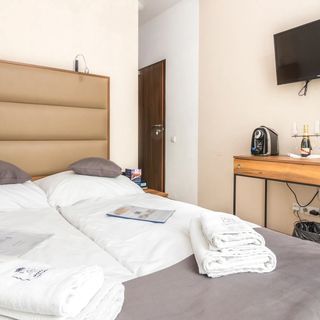 Obiekt Grodzka Royal Apartments oferuje zakwaterowanie w Krakowie. Dostępnych jest 14 luksusowych pokoi typu Double lub Twin z łazienkami. Starannie dobrane kolory sprawiają, że w pokojach panuje miła i relaksująca atmosfera, która kojąco wpływa na samopoczucie. Pragniemy, aby nasi Goście czuli się jak w domu, dlatego wszystkie nasze pokoje wyposażone są w telewizor, sejf, biurko, minibar, stacje dokujące do iPhone'a/iPada oraz bezpłatne WiFi.