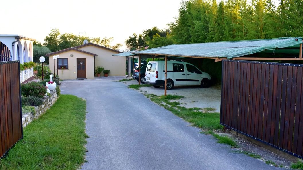 Na podwórzu ogrodzonej posesji do wspólnego użytku znajduje się grill oraz zadaszony parking z 4 miejscami postojowymi.