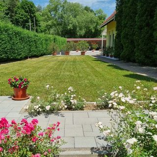 sierpień 2025A kert nagyon szuper volt. Kényelmes félkör alakú kanapé, hintaágy, napozó ágyak. A kert szépen rendben tartott, virágos. A szobák nem túl nagyok (egy szoba kivételével) de alváshoz teljesen ideális! A tó 5 perc séta.