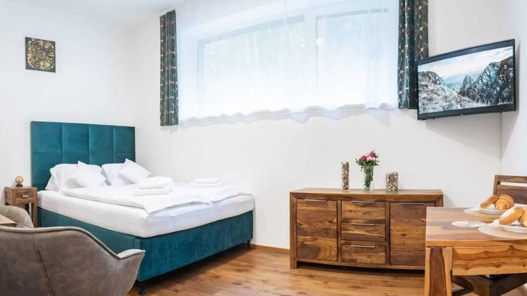 Nowy luksusowy apartament dwuosobowy (studio) KRKONOŠE na parterze nowoczesnego ośrodka wyposażonego w centralną rekuperację i ogrzewanie podłogowe.