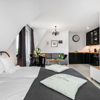 Apartament Tartaczna 366 typu studio oferuje Państwu pobyt w klasycznych wnętrzach w nowoczesnej odsłonie. Przestrzeń zaprojektowano tak by w Apartamencie było wszystko co jest niezbędne aby Państwa pobyt był wygodny i niezapomniany. Wnętrze urządzono w stylu modern classic, którego charakter jest mocno związany zarówno z tradycyjną stylistyką jak i nowomodnym stylem. Tutaj doskonałe rzemiosło współgra z wysmakowaną formą i perfekcyjnie dopracowanym detalem. Obiekt jest w pełni wyposażony i zaaranżowany z dbałością o szczegóły zapewniając poczucie ładu i harmonii. Mieszkanie składa się z salonu z dużym, podwójnym łóżkiem, aneksem kuchennym i rozkładaną sofą oraz łazienki z kabiną prysznicową. Apartament znajduje się na 4 piętrze nowoczesnego budynku z cichobieżną windą i 24h ochroną. Apartament jest w pełni wyposażony w podstawowy sprzęt AGD, ekspres do kawy z kapsułkami, porcelanę, szkło i sztućce, telewizor z płaskim ekranem oraz bezprzewodowy, bezpłatny internet. W łazience znajdą Państwo komplet puszystych ręczników i kosmetyki hotelowe a na łóżku świeżą, pachnącą pościel.