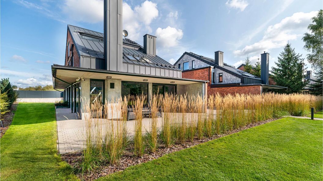 - Dom wykonany z drewna i cegły
