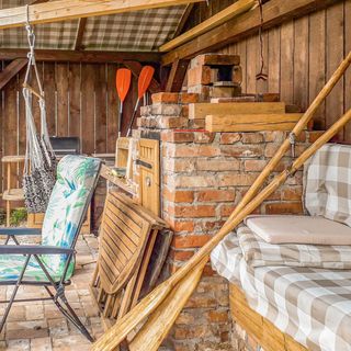 - Dom wykonany z drewna i cegły