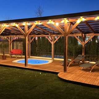 Na terenie obiektu, na wspólnej werandzie, przygotowano strefę relaksu i rozrywki z jacuzzi, sauną fińską oraz stołem bilardowym.