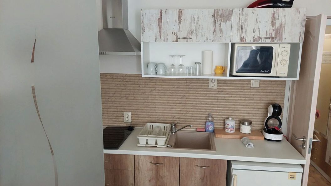 czerwiec 2022A fürdőszoba bekészítés szuper volt! Mini tusfürdő, fülpucoló, vatta pamacs mellett még egészségügyi betét is volt. Nagyon tetszett az is, hogy Dolce Gusto kávégép volt a konyhában, kávé kapszulával!