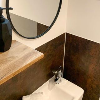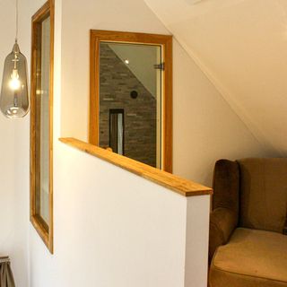 - Dom wykonany z drewna i cegły