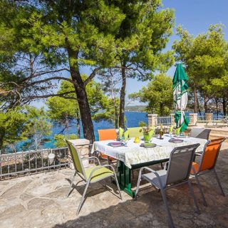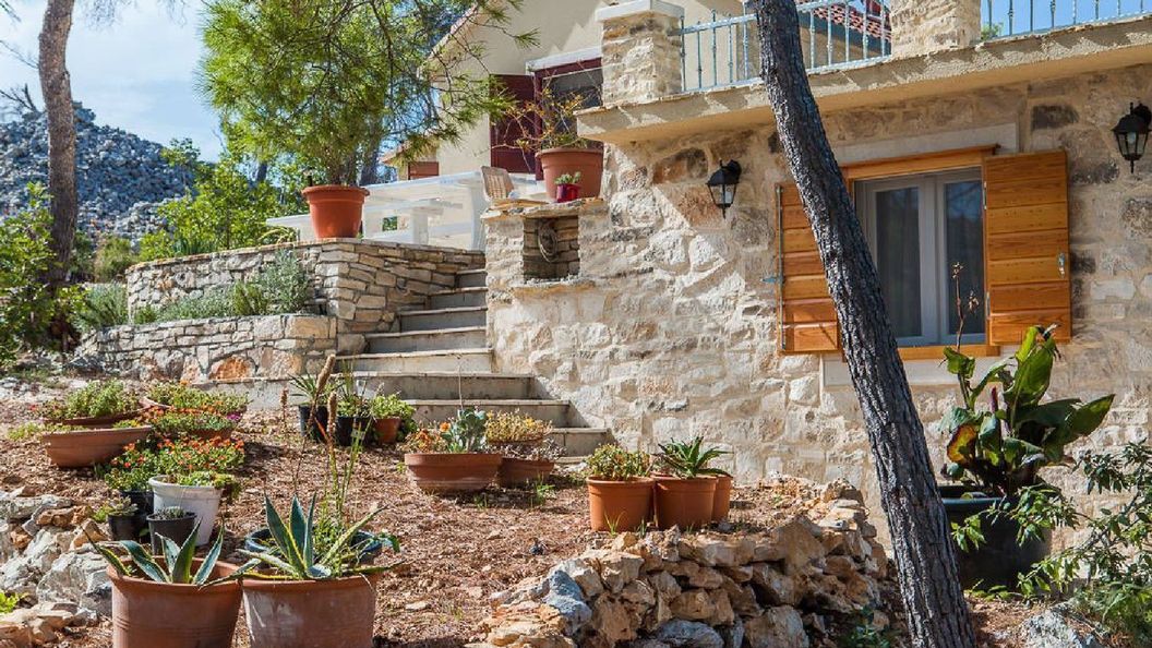 Liebevoll angelegtes Haus und Grundstück mit eigenem Ufer und Steg in einem schattigen Kiefernwäldchen gelegen - Robinson Crusoe Gefühl inklusive. Alle Fenster und Türen mit Moskitonetzen versehen, nette Einrichtung, gemütliche Betten. Großzügig ausgestattete Terrassen und Schwimmflossen, Schnorchel, StandUpBoards, Kajak, Grill sowie eine Außendusche vorhanden. Freundliche und äußerst hilfsbereite Vermieter. Keine Elektrogeräte über 1000 Watt möglich (nur Solarstrom). Geringer Wasserdruck weil Zisternenwasser, Trinkwasser in Gallonen vorhanden. Äußerst liebenswerter und romantischer Ort mit wunderbarem Blick über die Adria und über die benachbarte Inseln. Klares Wasser, keine Quallen, keine Seeigel, toll zum Schwimmen oder Schnorcheln. - Die wunderbare Ruhe dieses Ortes wird nur durch einen regen Schiffsverkehr gestört: Im Verlauf des Tages kreuzen hunderte Schiffe die Bucht, sowohl größere Fähren, als auch private Yachten, die auch gerne unmittelbar vor dem Grundstück ankern, manchmal über Nacht. In der Summe führt das zu einem beständigen Teppich aus Motorengeräuschen - leider von früh bis spät. Manche Luxusyacht toppt das Ganze noch mit nächtlicher Technoparty. Schade!