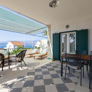 sierpień 2024Lovely apartment with spacious terrace. The apartment is equipped with everything you may need during your stay (all kitchen appliances, towels, a washing machine, drying rack, a dishwasher, BBQ, air conditioning in all rooms). A shop is located accross the street and the beach is within walking distance (5-10 minutes).