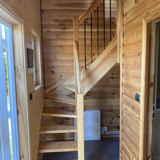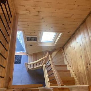 Na parterze znadjduje się narożnik rozkładany z funkcją spania, klimatyzacja, stolik kawowy, fotel, kominek, toaleta z prysznicem, stolik z 4 krzesłami, kuchnia w której znajduje się: piekarnik, lodówka, płyta indukcyjna, czajnik, zmywarka.