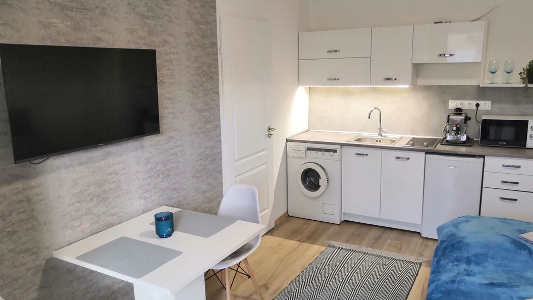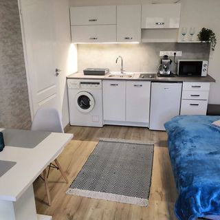 sierpień 2023Az apartman szépen berendezett,jól felszerelt,tiszta,kényelmes. A szállásadó nagyon kedves és segítőkész. A mosógép egy extra szolgáltatás amit máshol még nem is láttam. Kávéfőző,kávé,cukor szintén kedves gesztus. 😊