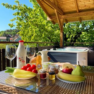 luty 2024Barátságosan berendezett,tiszta,pihenésre alkalmas a kisház.A terasz nagyon jó fekvésű szép a kilátás.A jakuzzi a hely kiválasztásánál is nagy előny volt, nem okozott csalódást.
