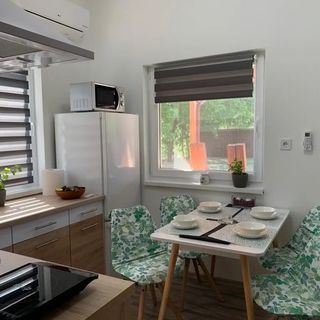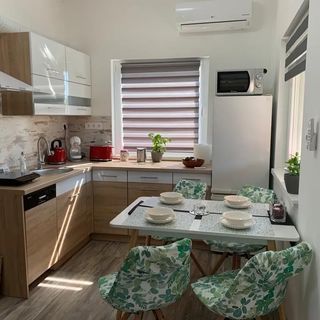 październik 2025Barátságos, közvetlen vendéglátók, minden átlagos igényt kielégítően felszerelt (gázkazános fűtés, de van klíma és mosogatógép is van a WiFi mellett) vidám színekre festett, csendes, biztonságos környezetben (az utcák be vannak kamerázva) kialakított apartmanok gondozott zöld környezettel, ahol a hintázni/csúszdázni vágyó aprónép és a grillezni vagy pingpongozni szerető, vagy egyszerűen csak pihenni akaró nagyobbak is feltalálják magukat. Egy szoba van, de az elég nagy volt ötünknek, a zuhanyzó kényelmes. A hűtőben talált italok és a kávékapszulák fizetősek, de egyrészt messze nem szállodai minibáros az árszínvonal, másrészt lehet vinni mindenből sajátot is. Nekünk jórészt csak Szeged melletti két éjszakás szállásként funkcionált, mivel jórészt a környéket jártuk, de több időt is tudtunk volna ott tölteni gond nélkül. Nyugodt szívvel ajánlom másnak is.