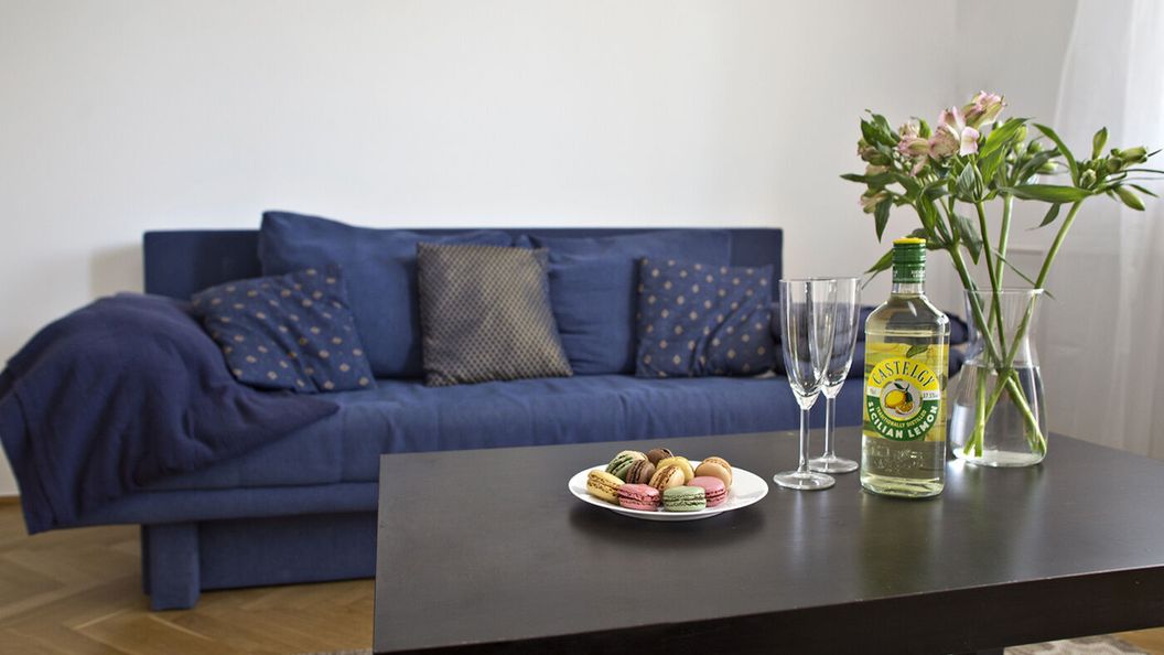 Przestronne mieszkanie 2-pokojowe z balkonem o powierzchni 53 m2, znajduję się na ostatnim trzecim piętrze, w małym kameralnym budynku bez windy. W salonie znajduje się rozkładana sofa 2-osobowe z funkcją spania, Tv z dużym ekranem plazmowym, oraz pojemna szafa. W łazience jest wanna i pralka. Na tarasie jest stolik i dwa krzesła. W sypialni duże łóżko 2- osobowe 180x200, komoda oraz szafa wnękowa Kuchnia jest jest osobnym pomieszczeniem o wymiarach 9m2, w której znajdują się wszystkie potrzebne sprzęty takie jak lodówka, płyta gazowa, piekarnik, mikrofalówka a także stół z czterema krzesłami.