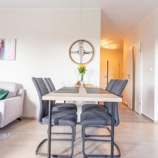 Bardzo ładnie, nowocześnie wykończony apartament. Dobra lokalizacja - do morza do. 15 min, do centrum Gdańska - nieco dłużej. Mieszkanie dobrze wyposażone, zmywarka - to już standard, a i pralka, po pobytach na plaży, też się przydała.