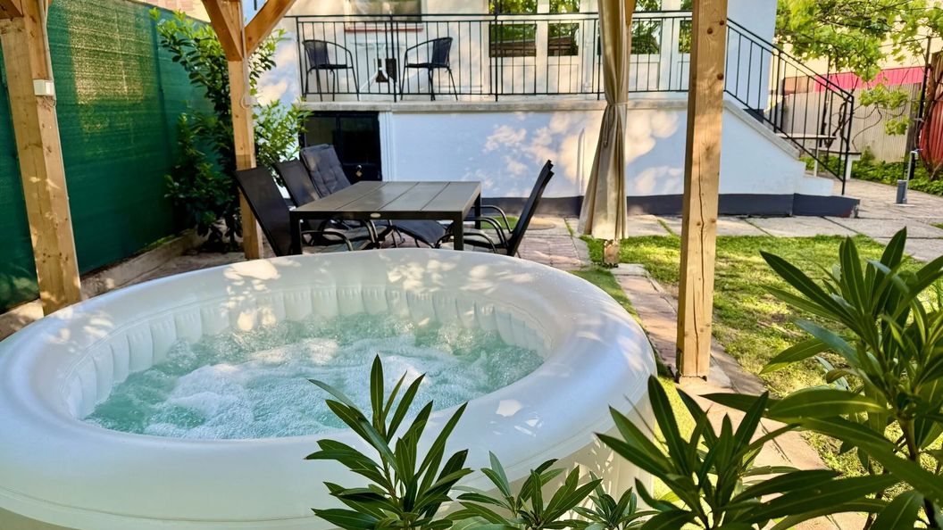 Apartament z jacuzzi i prywatnym podwórkiem – w sercu Hajdúszoboszló, dla 4 osób