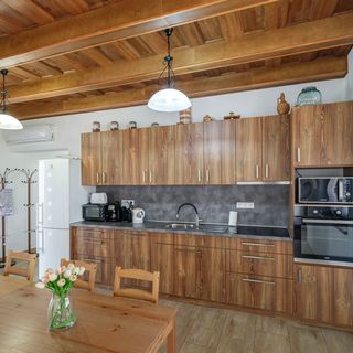 październik 2025Az épület újonnan épült és kívülről egy régi stílusi falusi ház benyomását kelti, de belül minden új, tiszta, nagyon jól felszerelt konyha és szobák találhatók benne. Sajnos csak egy éjszakát tudtunk itt eltölteni ebben a házban, de nagyon jól éreztük mindhárman benne magunkat.