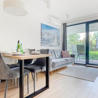Część apartamentów posiada miejsca postojowe (na parkingu zewnętrznym lub w garażu podziemnym).