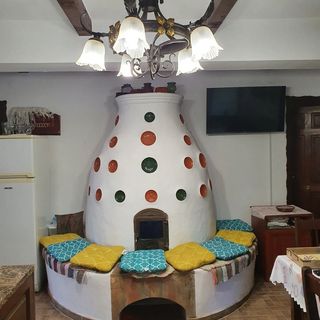 - Piec kaflowy w pokoju