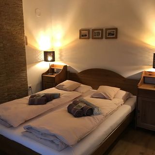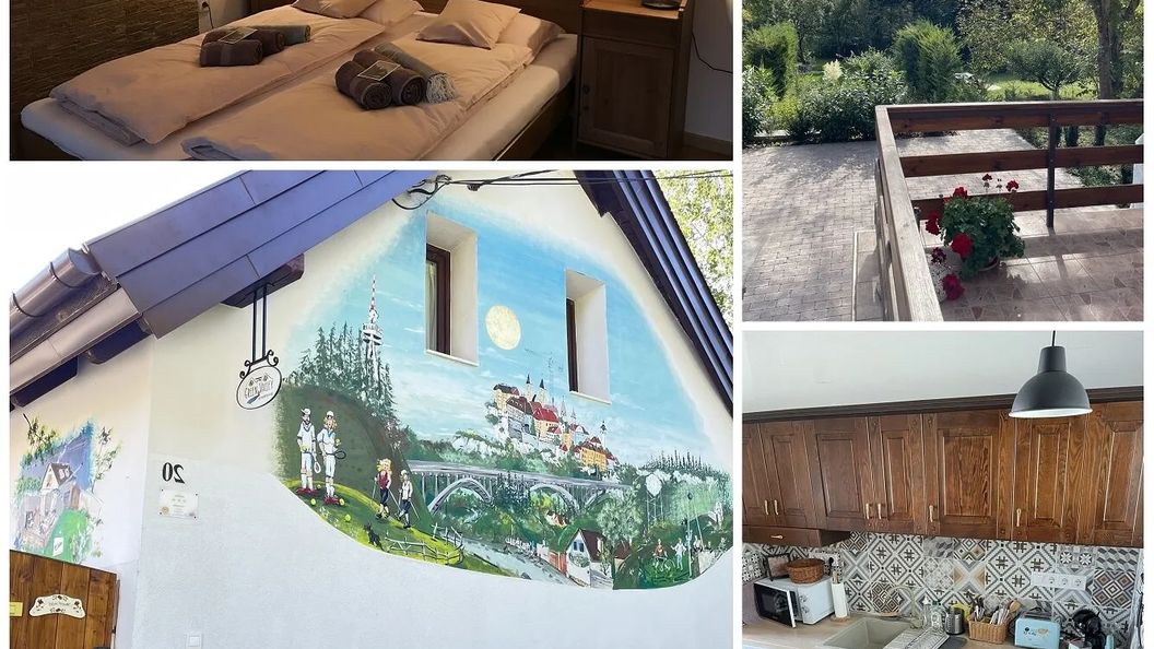 4 dni temuA szállás teljesen megfelel az ajánlóban leírtaknak. Könnyen megközelíthető, város széli, csendes, nyugodt környezet. A természetes és a városi kiépített közeg összeolvadásában. Óváros 10 perc séta, állatkert 5 perc séta, túrázási lehetőség 5 perc. A szállás jól felszerelt, tiszta, gyerekbarát (játékok, kert, közeli játszótér. Egy kiskocsi amiben a gyermek könnyen szállítható, ezt minden nap használtuk!). Gyönyörű kilátás, madár csicsergés, csak ajánlani tudom. Wellness lehetőség 2 perc. Étterem, bolt 5 perc.