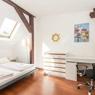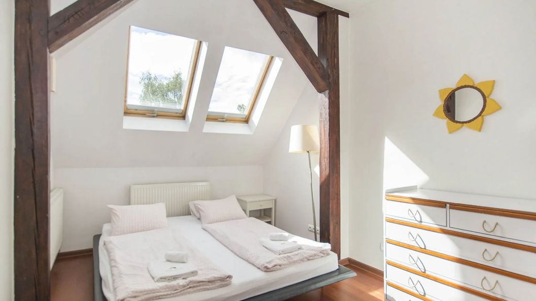 Mieszkanie położone na poddaszu sopockiej kamienicy. Jasne i przestronne. Sypialnia z dużym łóżkiem i szafą, salon z rozkładaną sofą. Kuchnia wyposażona w niezbędny sprzęt do przygotowywania samodzielnych posiłków.