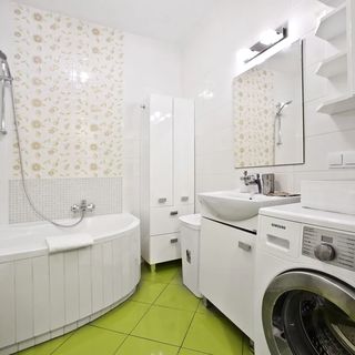 Łazienka: Wanna, umywalka, lustro, WC