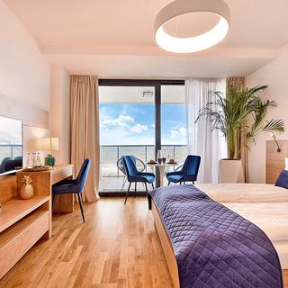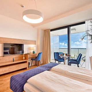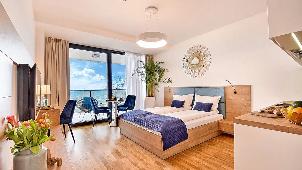 Apartamenty SeaView to wyjątkowe apartamenty dla osób ceniących wysoki standard. Umiejscowione są one w pierwszej linii nad samym morzem, co gwarantuje najlepszy możliwy widok. Obiekt ,w którym znajdują się apartamenty, wyposażony jest w strefę SPA wraz z basenem, siłownię, restaurację, ściankę wspinaczkową oraz strefę zabaw dla dzieci.