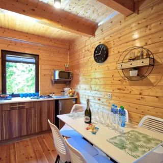 Wnętrza domków zostały wyposażone z myślą o samodzielnym pobycie gości. W każdym z nich znajduje się telewizor LCD, lodówka oraz aneks kuchenny z płytą grzejną, czajnikiem elektrycznym i kompletem akcesoriów kuchennych. Do dyspozycji są również pralka, suszarka do włosów, suszarka na pranie oraz ręczniki.