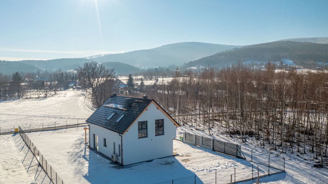 Obiekt usytuowany jest na dużej ogrodzonej działce z pięknym widokiem na szczyty Gór Izerskich.