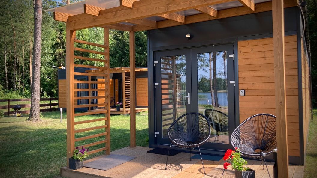 Obiekty mają charakter całorocznych, nowoczesnych domków modułowych położonych 15m od jeziora Selment Wielki w okolicy Ełku oraz Augustowa.Usytuowane są na prywatnym, ogrodzonym terenie otulinie lasu na działce z bezpośrednim dostępem do linii brzegowej jeziora co nadaje miejscu charakteru strefy indywidualnego wypoczynku w poczuciu komfortu oraz bezpieczeństwa.Każdy z domków wyposażony jest w salon, aneks kuchenny łazienkę, sypialnię oraz przestronny taras z widokiem na jezioro. Do dyspozycji gości mamy pomost kąpielowy, sprzęt