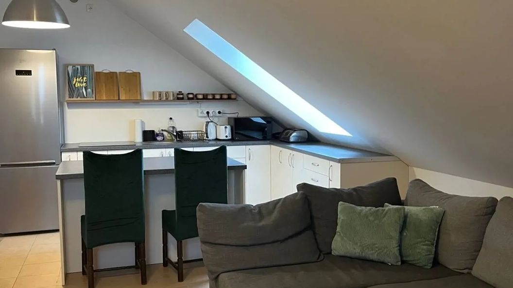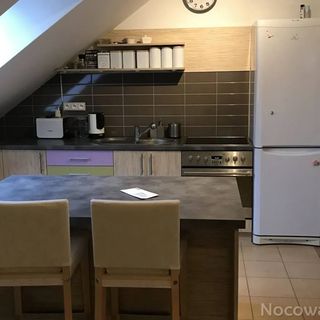 Posiadam do wynajęcia dwa mieszkania ( 60 m2 ze skosami ) na poddaszu domu dla 6-8 osób każde z nich. Mieszkania są lustrzanym odbiciem. W każdym z nich występuje: pokój dzienny z aneksem kuchennym, wyposażonym w stół jadalniany, część wypoczynkową z tv. Kuchnia i łazienka kompletnie wyposażona. Sypialnia wyposażona w trzy łóżka, lampki nocne oraz gniazda ładowania USB przy łóżkach, wygodny fotel oraz pojemna szafa. Wymiana pościeli raz w tygodniu. Parking pod domem.