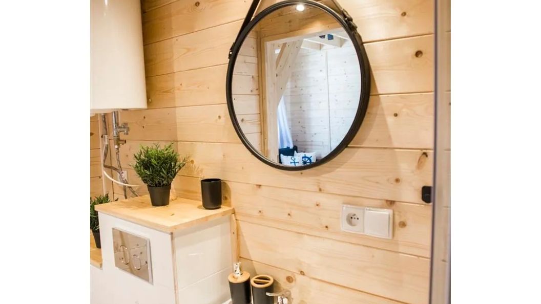 Każdy domek jest wyposażony w salon z aneksem kuchennym, dwie sypialnie na górze domku, TV, łazienkę z WC i prysznicem. Salon posiada rozkładany narożnik dwuosobowy z funkcją spania. Dwie niezależne sypialnie są wyposażone w łóżko małżeńskie oraz trzy łóżka pojedyncze.