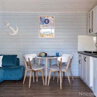 Każdy domek posiada pokój dzienny połączony z aneksem kuchennym, 2 sypialnie, oraz łazienkę.