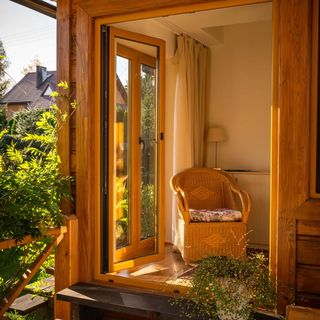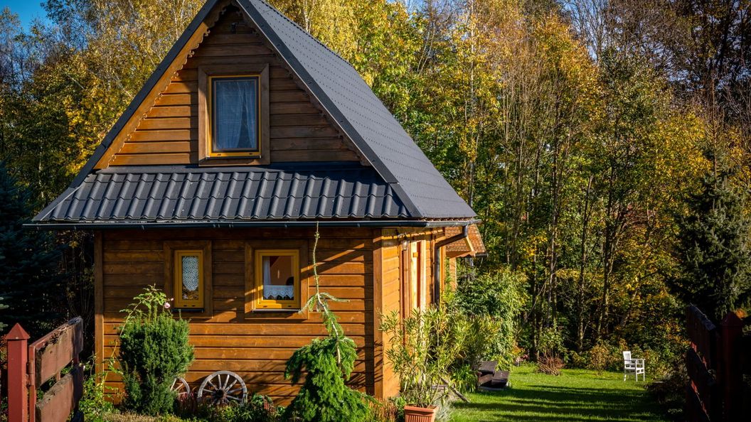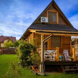 Nasz drewniany domek położony jest w cichej i spokojnej wsi na ogrodzonej 8 ar działce.