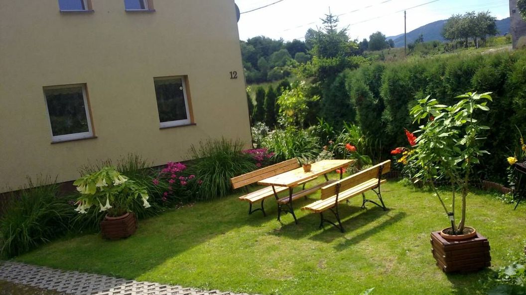 Na terenie posesji, nad potokiem znajduje się taras z grilem, stołem i krzesełkami. Istnieje możliwość zaparkowania samochodu na terenie posesji. W czasie upałów można schłodzić się w potoku Młynówka, który płynie przy budynku. 300 metrów od nas można zjeść na obiad smaczną rybkę w "Raju Pstrąga".
