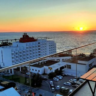 Na 10. piętrze z szerokim widokiem na morze i zachód słońca, został ten apartament A 103 z 55 m² nowo zaprojektowany i umeblowany latem 2022 roku. Jest bardzo jasny, komfortowy i przyjazny. Posiada 1 sypialnię z dużym boxspring łóżkiem (180x200) i szafą do wchodzenia, salon, w pełni wyposażoną kuchnię, wnękę jadalną oraz łazienkę z dużym prysznicem. Salon i sypialnia połączone są z tarasem. Ponadto należy do apartamentu bezpłatne podziemne stoisko parkingowe, które znajdujące się bezpośrednio przy windzie do apartamentu.