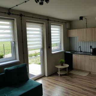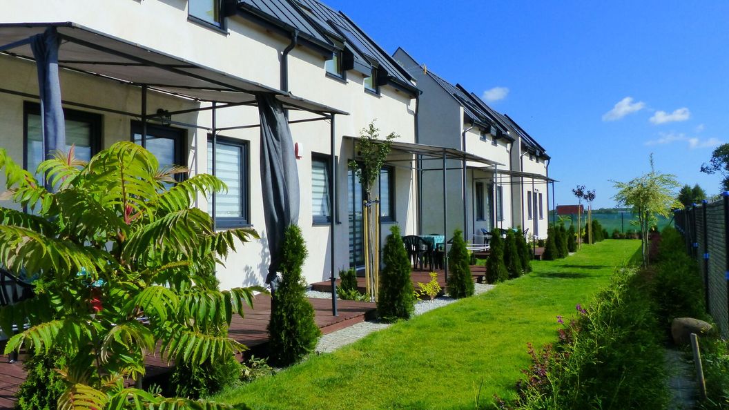 Proponujemy Państwu nowe, murowane i ocieplone domki z luksusowym wyposażeniem: zmywarka, 40 calowy TV, duża lodówka z oddzielnym zamrażalnikiem, indukcja, mikrofala. Domki mają 44 m2 powierzchni oraz zadaszony taras. Możemy gościć 2-5 osób. Na dole salon z rozkładaną sofą, aneks kuchenny i łazienka. Na górze dwie oddzielne sypialnie (pierwsza z łóżkiem małżeńskim, druga z dwoma jednoosobowymi łóżkami). Wysokie sufity zapewniają miły chłód latem. Miejsca parkingowe na terenie posesji. W ogrodzie dostępny jest sprzęt do grillowania.