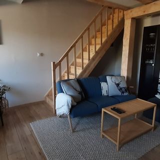 Przygotowany dla Was apartament, to część zamieszkiwanego przez naszą rodzinę domu. Dom ten, to prawie 150-letni budynek, jeden z nielicznych zachowanych w okolicy, wybudowany z kamienia. Apartament składa się z salonu z kominkiem i TV, w pełni wyposażonego aneksu kuchennego z jadalnią, 2 sypialni (w każdej łóżko 160x200), pokoju-bawialni dedykowanego dla dzieci (z rozkładaną sofą) oraz łazienki. Całość przygotowana jest optymalnie dla 6 osób, ale w razie potrzeby nie ma problemu dostawienia 2 dodatkowych pojedynczych łóżek, czy łóżeczka dla maluszka. Bezpłatne Wi-Fi oraz prywatny parking to tylko niektóre z licznych udogodnień, jakie oferuje to miejsce.