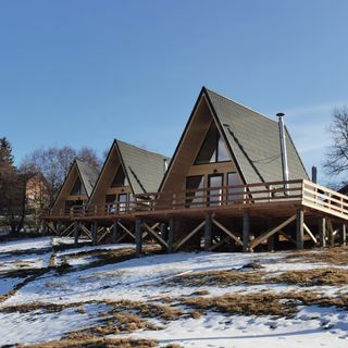 Jeżeli masz odpowiednie urządzenie przenośne, możesz podłączyć sie do Internetu poprzez bezprzewodową sieć (WiFi) dostępną w domku drewnianym.