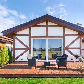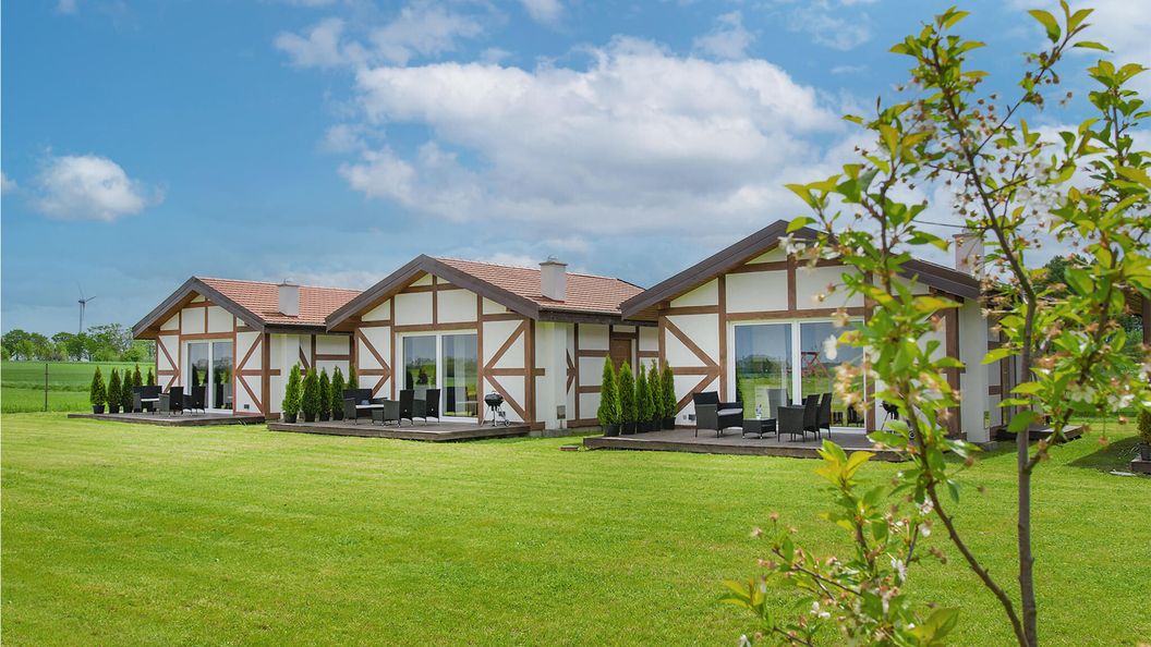 - Dom wykonany z drewna i cegły